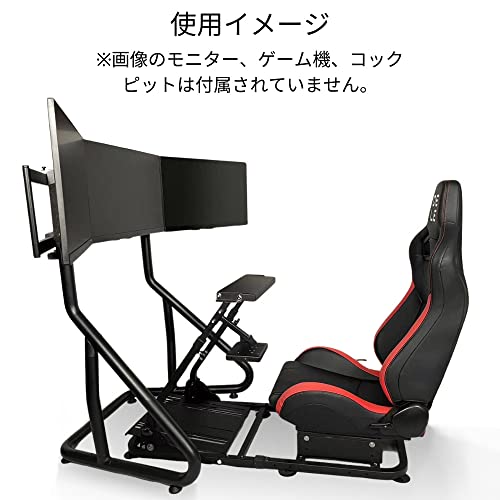 また、足を追加したこれは一瞬便利かと思うが、形状を見る限り、コクピットを潜らせて画面を顔に近づけるのが難しい。ハードルが高いかもしれないが、安く済ませたいのなら、画面用の金具は上のを選定。脚は自分でどうにか製作するという手があると思う。その辺が手間・32インチより大きなモニタ載せたいなら7.5万円でしっかりとした純正の台買っておいたらいいかもね。