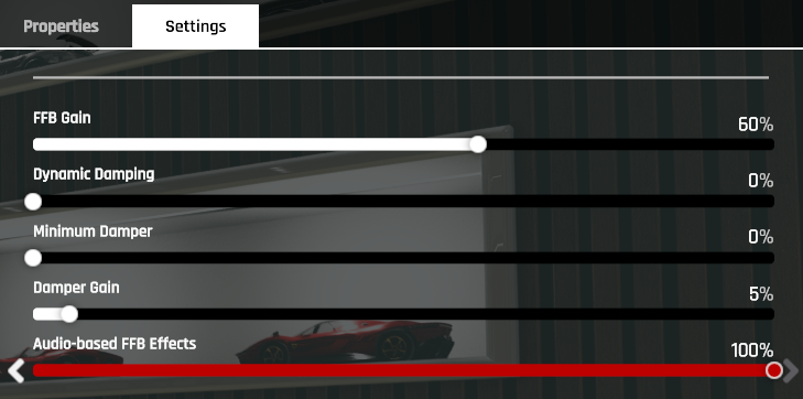 AC EvoでFANATECのFullForceを有効にする方法は、SettingのAudio-based FFB Effectsの数値を上げる。