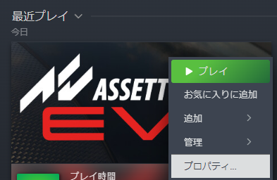 - Steamを開いて「ライブラリ」へ。AC EVOを右クリック