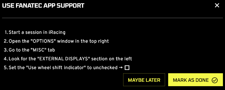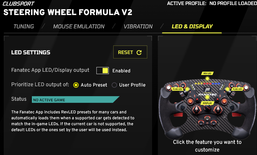 iRacingやアセコルでは、各車両に応じてFanatec推奨のFFB設定およびLED発光設定を以前に比べ直感的に割り当てられるような印象。