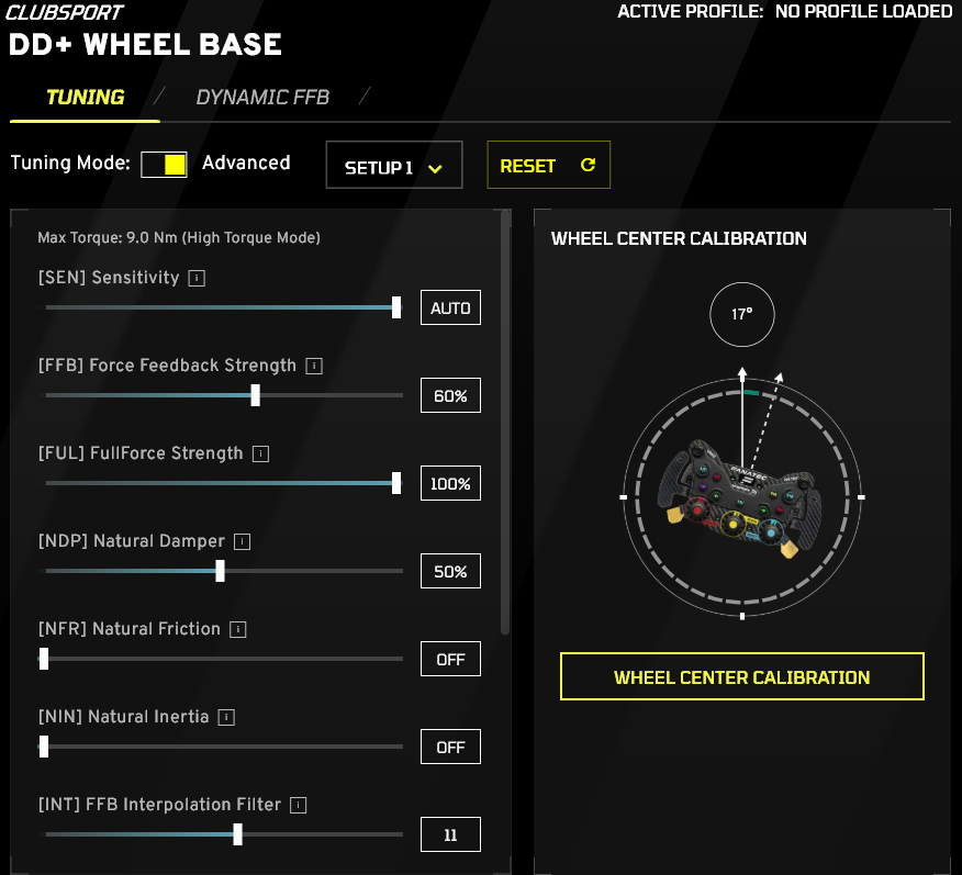 ちなみにこのタイミングでClubsport DD+のアップデートもあったようで、それをインストールすると、FullForceの出力が上がったようで、再度調整し直しました。FullForceの設定については以下の通り。