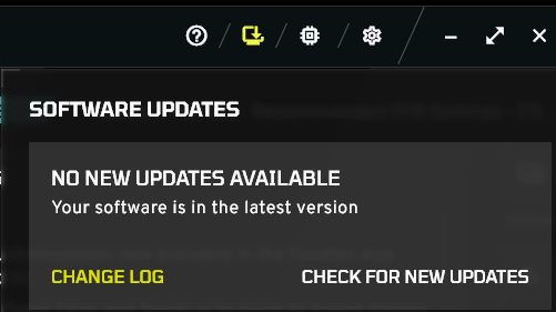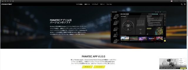 また、Fanatecアプリの右上の「↓」になっている黄色いものをクリックしても最新のドライバを案内してくれます。