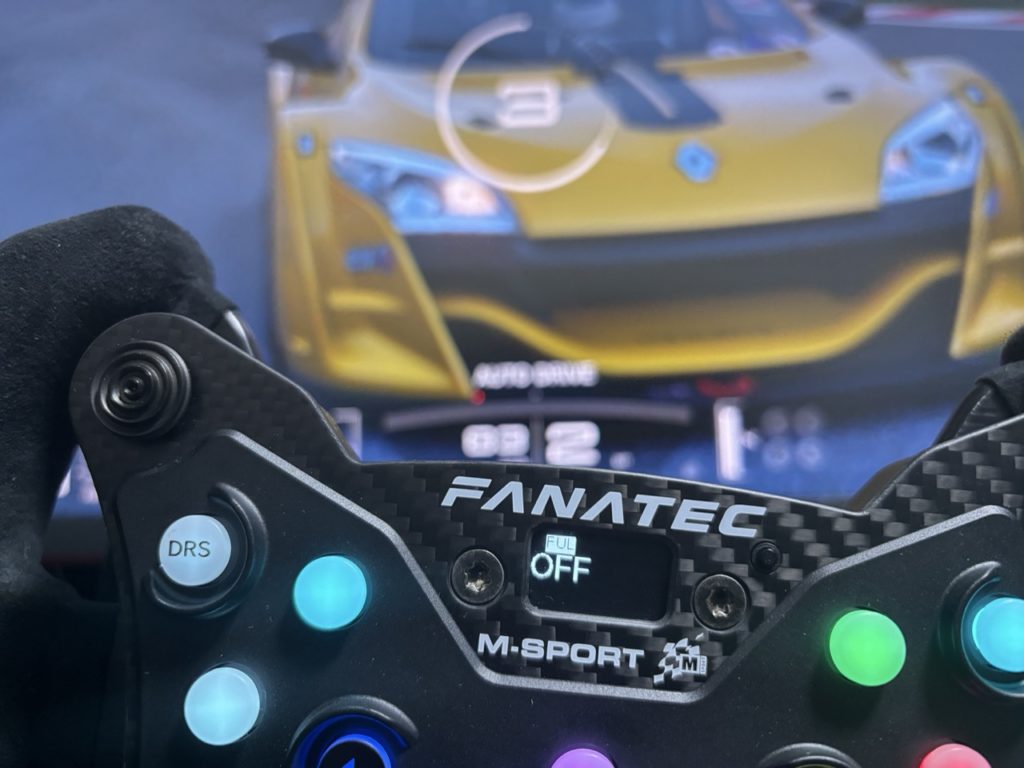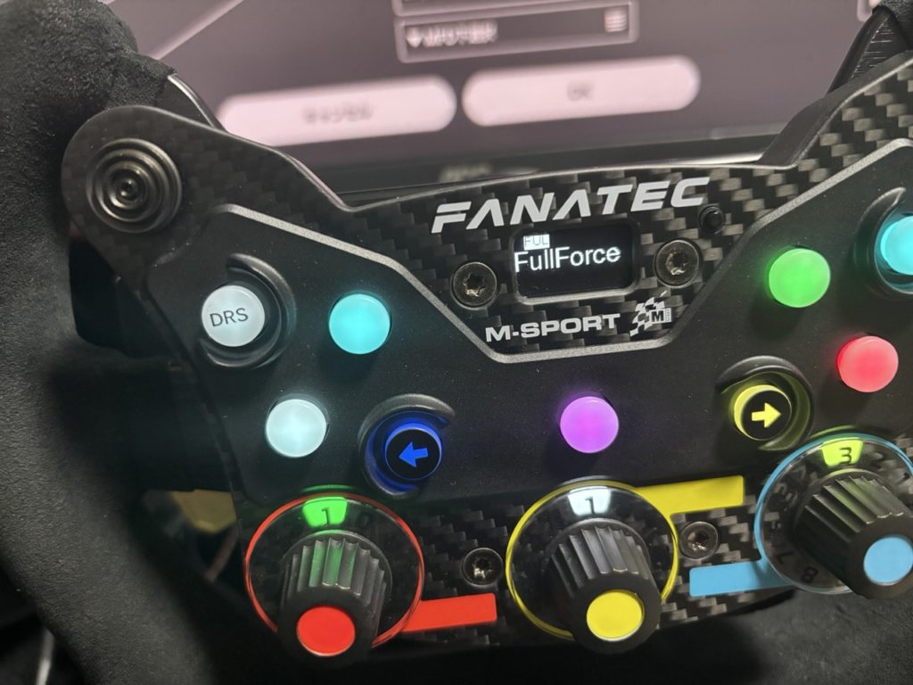 FullForceを使うには、ハンコンにGTDDExtreme(またはClubsport DD+とFANATECのステアリング)を使っておく必要があります。ステアリング上の中央付近にある小さなボタンを押したのち、ステアリングの十字キーで「FUL」のパラメーターを選択し、50とか100%とかになっていることを確認して走ってみてください。