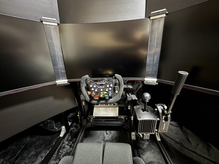 ステアリングやモーションだけでなく、ペダル、シフターに至るまで、すべてがハイエンド機材で統一されています。