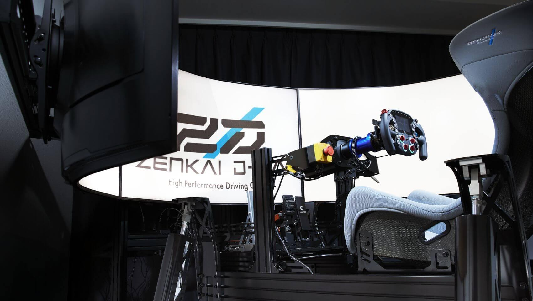 GTカー用シミュレーターでは、55インチ湾曲ディスプレイの3画面構成が採用されています。